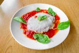 Sauteed chicken breast with prosciutto, mozzarella cheese, and eggplant.